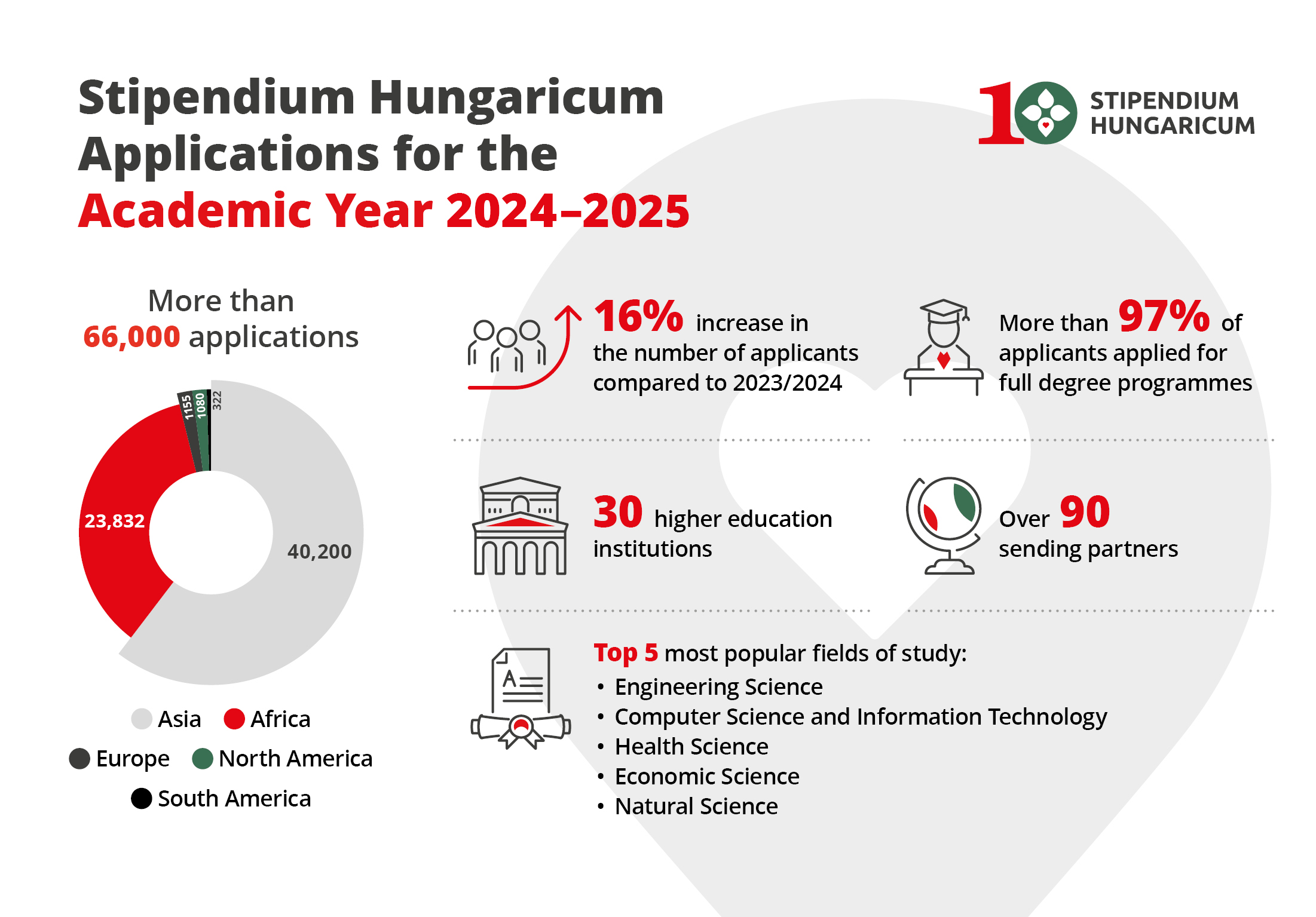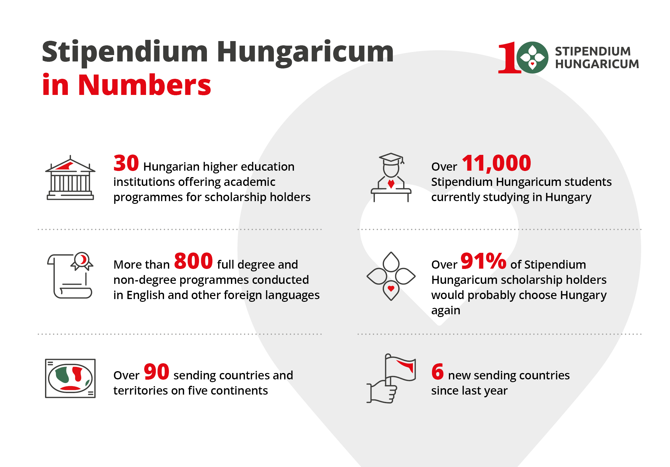 A Stipendium Hungaricum, a magyar kormány legrangosabb felsőoktatási ösztöndíjprogramja a képzések széles skáláját kínálja kiváló tanulmányi eredménnyel rendelkező, kiemelkedő teljesítményt nyújtó nemzetközi hallgatók számára. Az ösztöndíj célja, hogy támogassa a magyar felsőoktatás nemzetközivé válását és folyamatos fejlődését, erősítse a tudományos és kutatói közösség nemzetközi kapcsolatait, valamint elősegítse a magyar felsőoktatás jó hírnevét és versenyképességét világszerte.